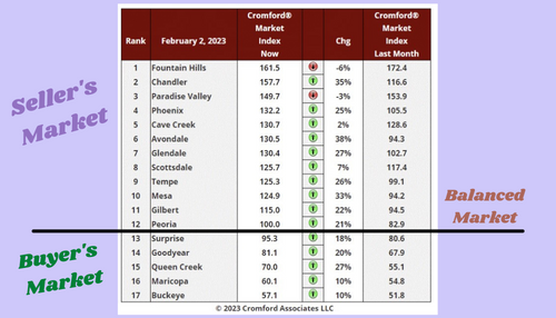 As you can see from above, 2 of the 3 strongest Seller's Markets have slowed down a little bit from the increase in interest rates. Chandler made a huge leap up, which is pretty timely for my newsletter. (Yeah, it is all about me.LOL)